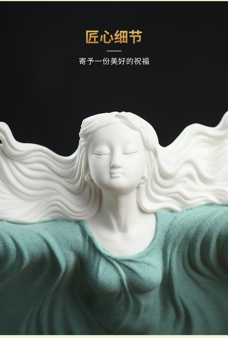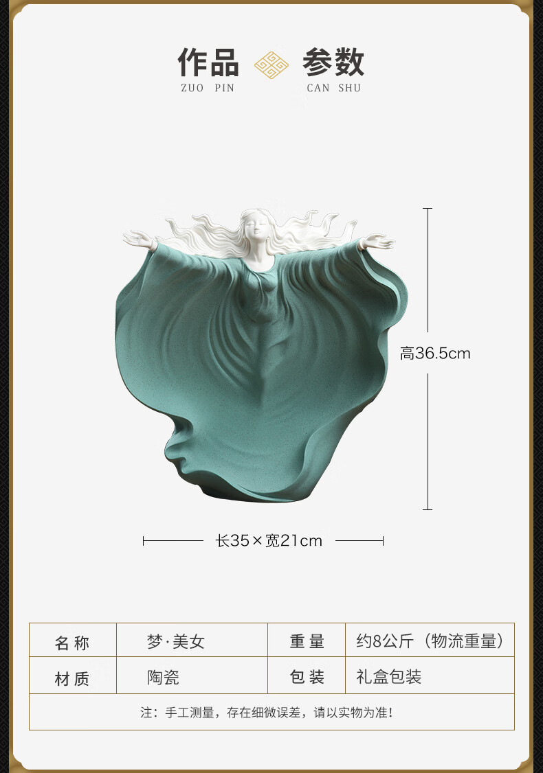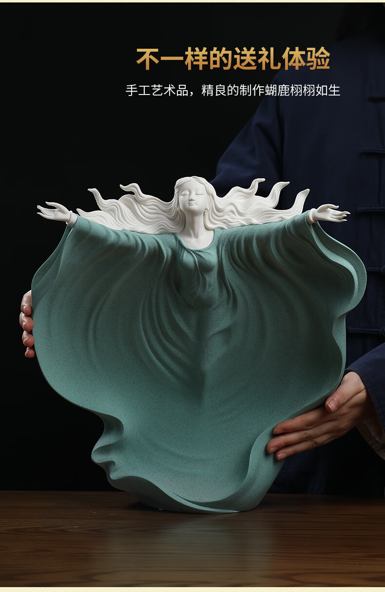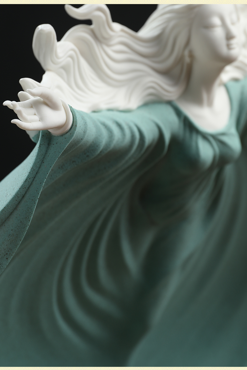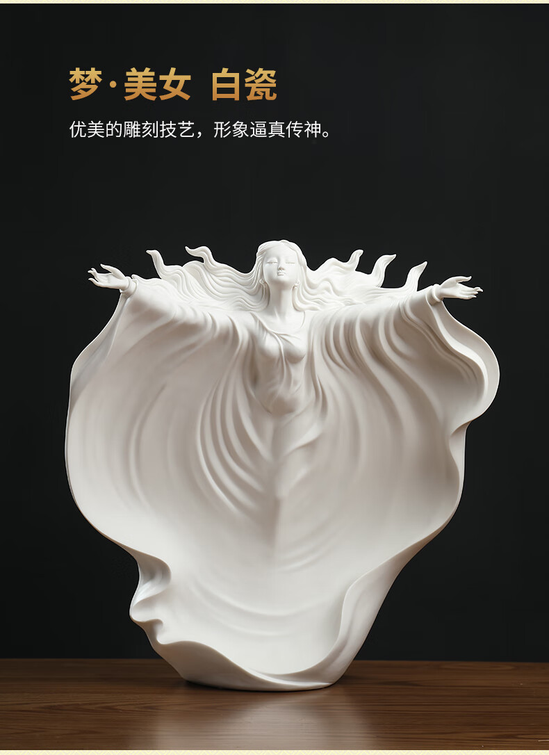 东方泥土《梦》雕塑摆件德化窑陶瓷美女客厅电视柜酒柜装饰工艺品D26-126C梦白瓷