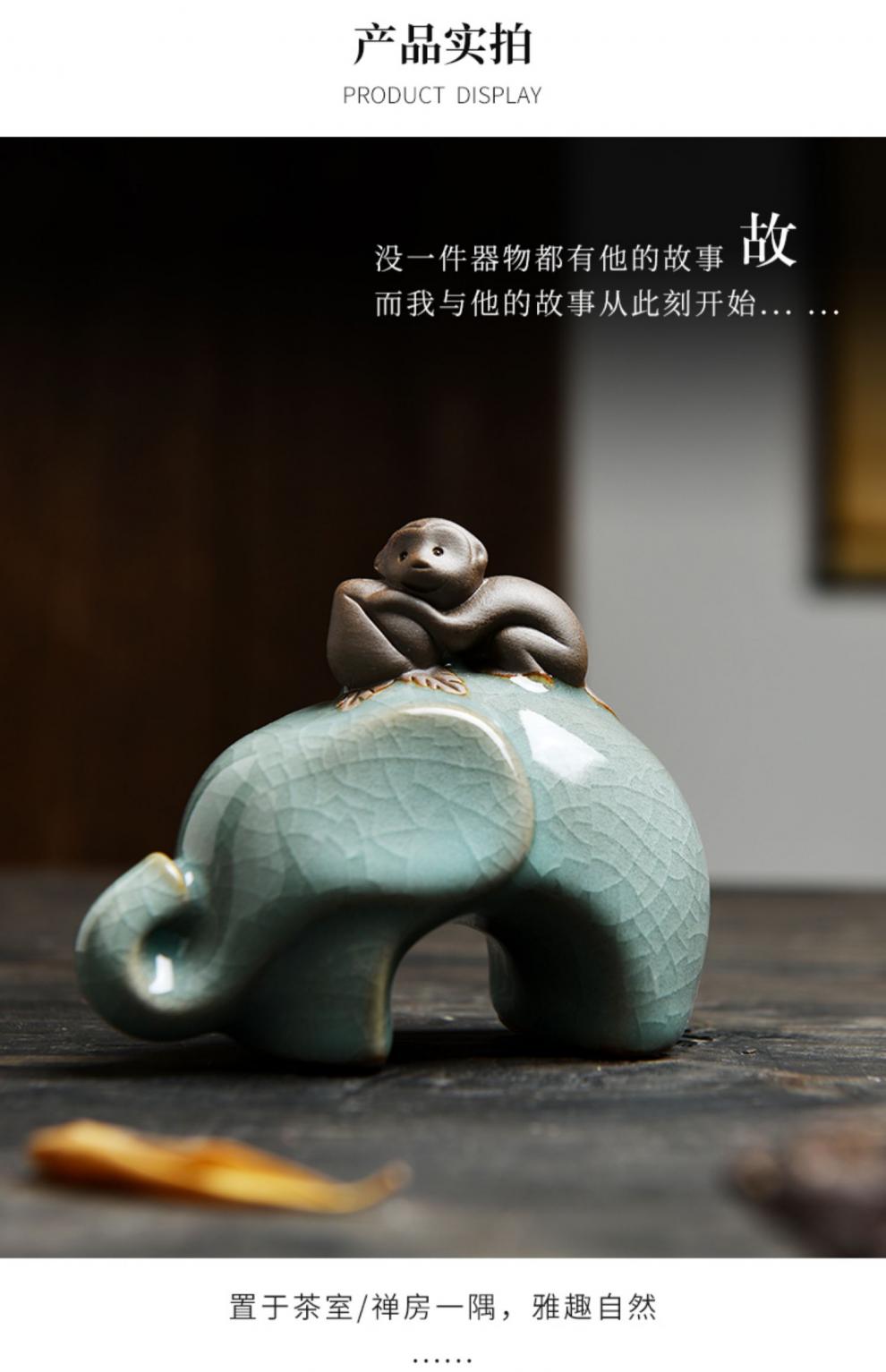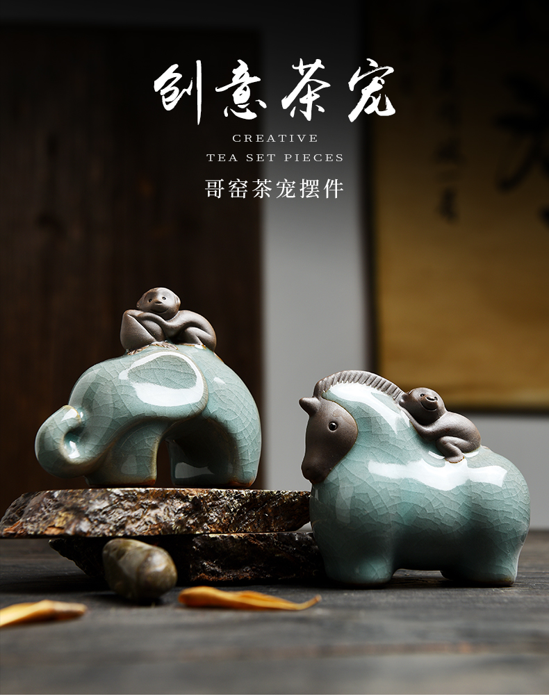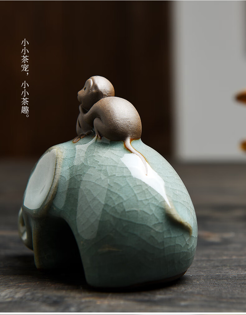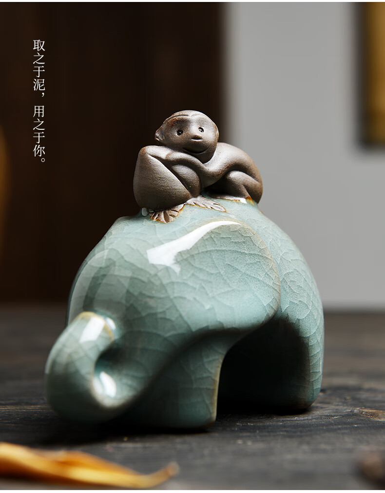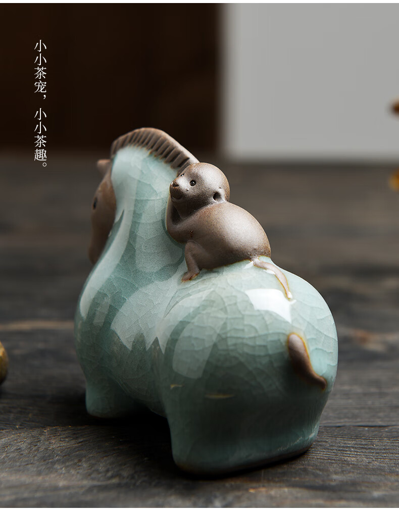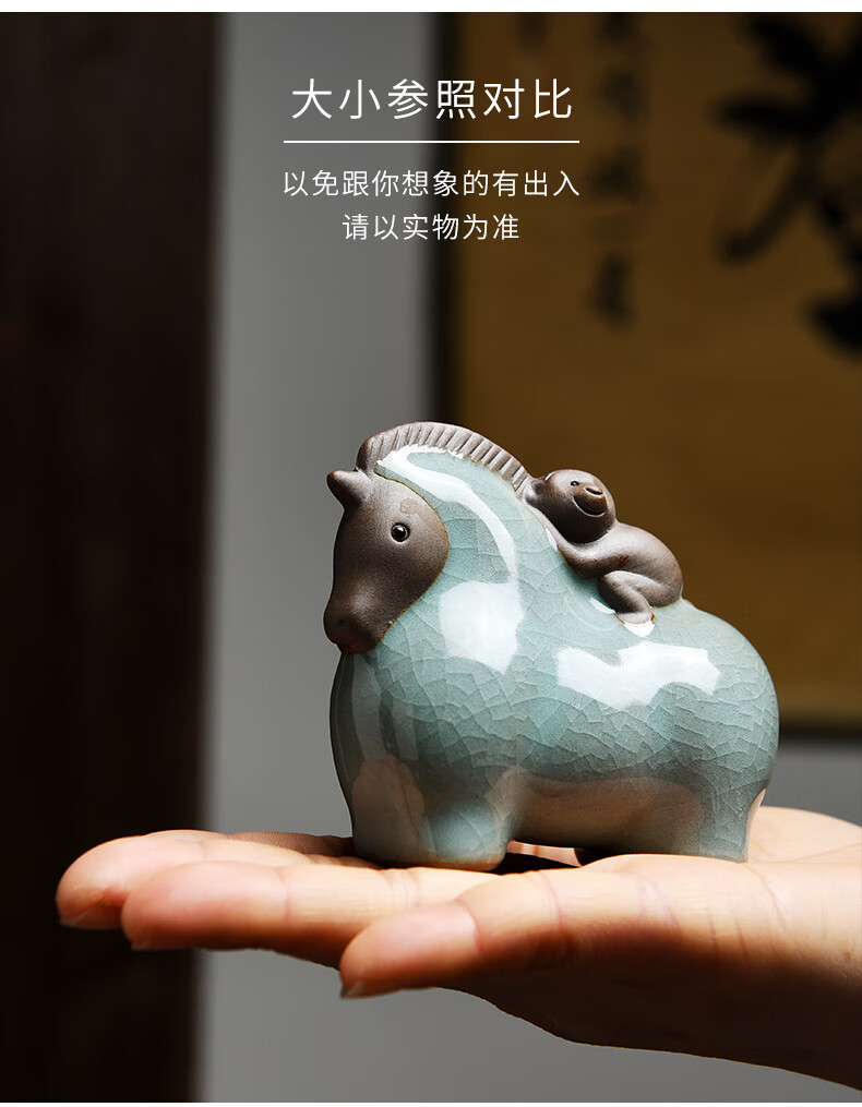 fw马上封侯摆件封侯拜相陶瓷家居装饰品博古架哥窑茶宠桌面摆设生肖猴属相马工艺品小礼物礼品马上封侯-哥窑