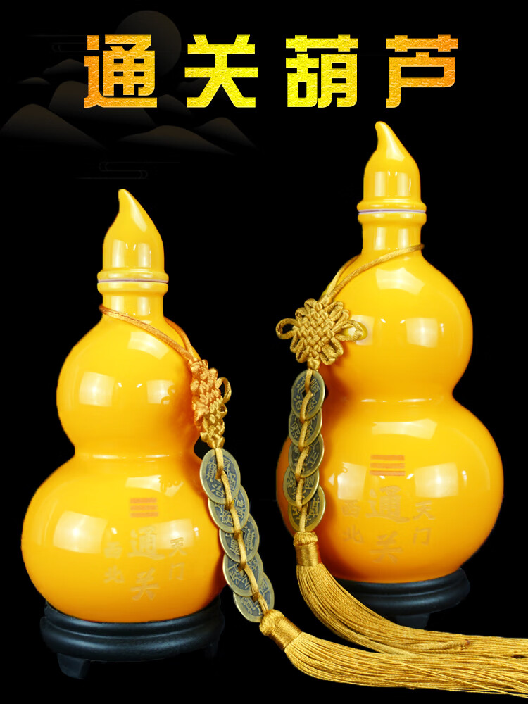 聚缘隆厨房在西北天门黄色陶瓷葫芦摆件乾卦简约中式补角葫芦工艺品装饰小号葫芦