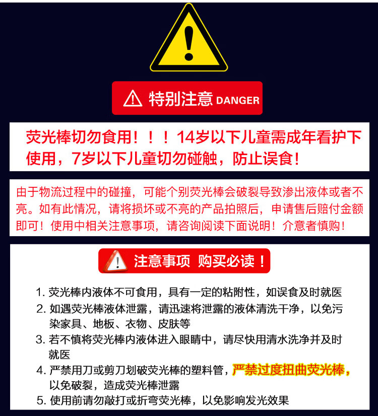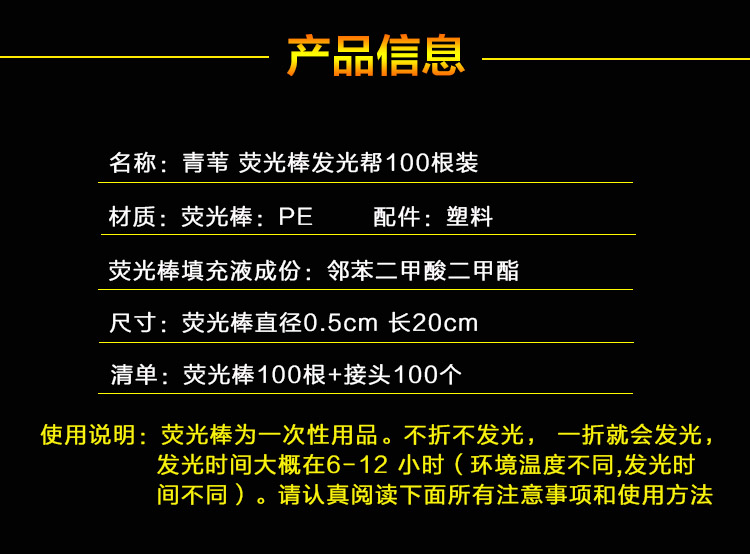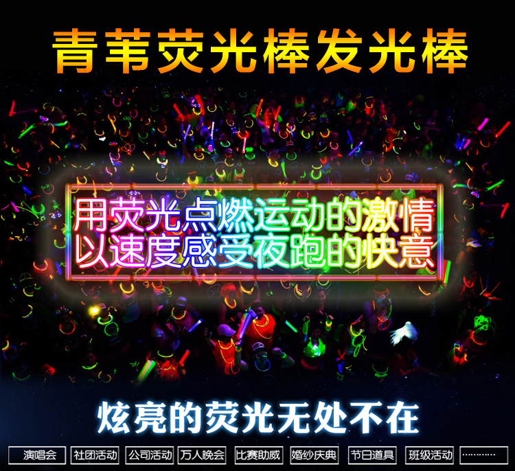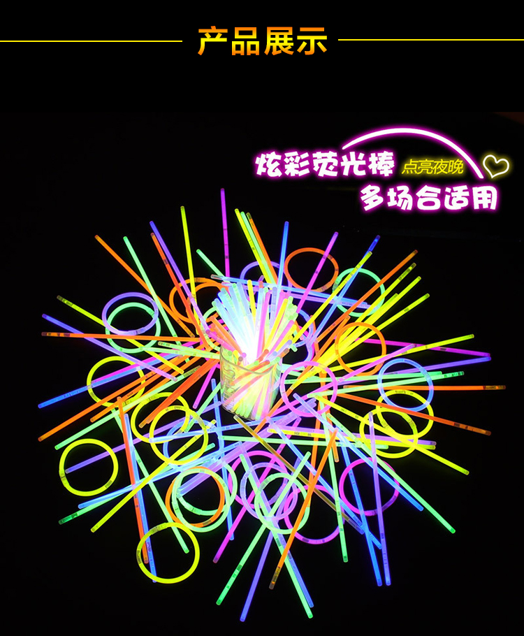 青苇荧光棒100根+100接头套装演唱会助威道具万圣节活动生日派对装饰