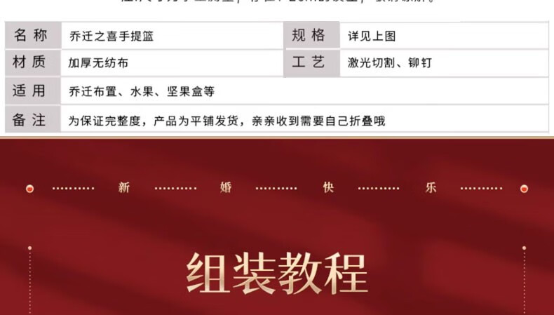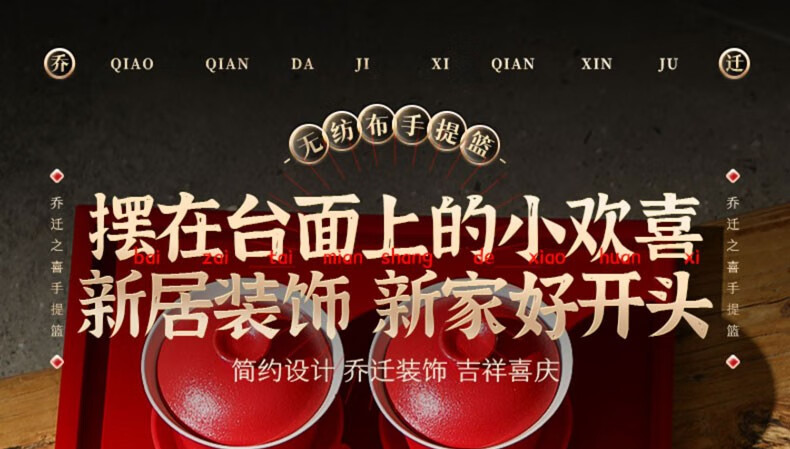 黄小暖乔迁之喜装饰新居布置用品手提篮搬新家礼物仪式乔迁摆件用品全套乔迁之喜手提篮【4个装】