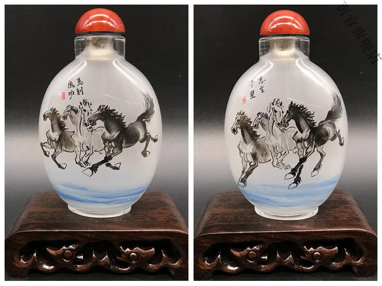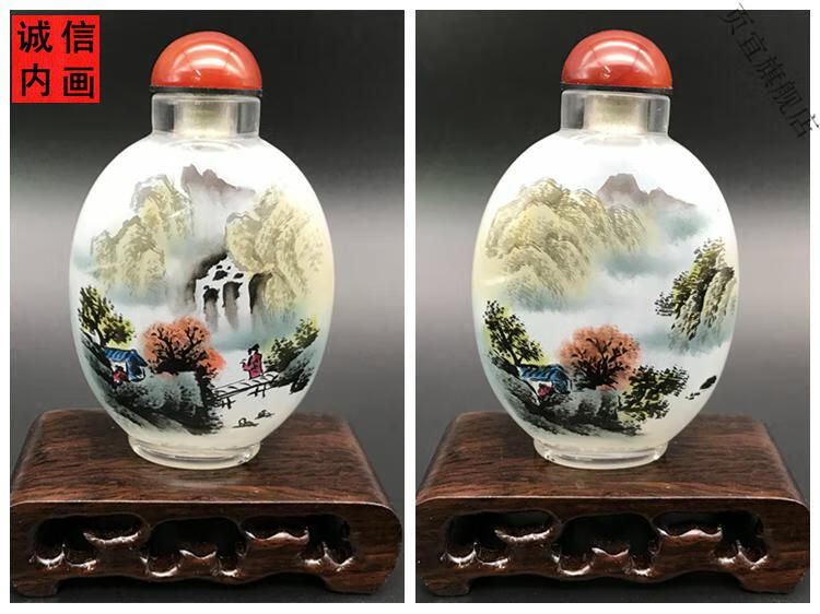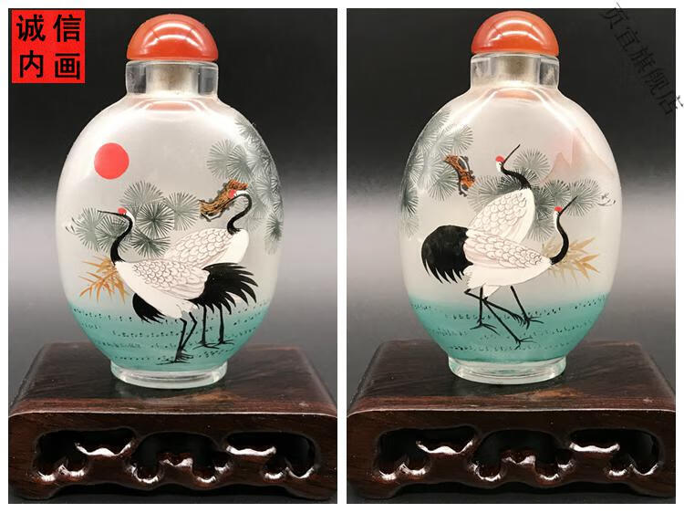 槿瑰内有乾坤鼻烟壶内画衡水鼻烟壶内画民间工艺手工非遗瓶内画外事中祝寿图