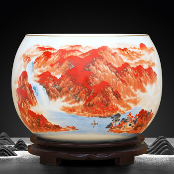 景德镇陶瓷器聚宝盆工艺品金鱼缸睡莲碗客厅大