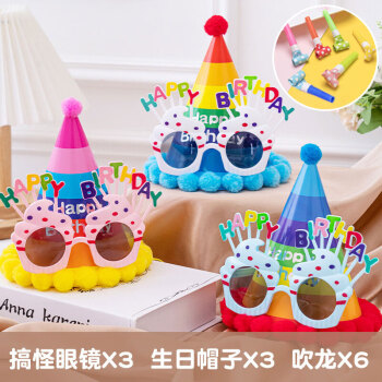 • 多美忆生日场景布置帽子吹龙眼镜12件套生日帽生日装饰男孩女孩